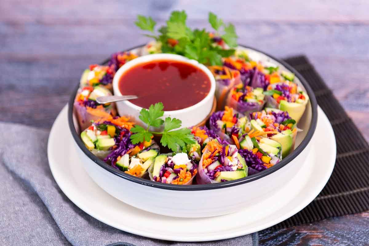 The vibrant colours in these rice paper rolls make a spectacular addition to your grazing board. Or why not make for a healthy lunch or snack!