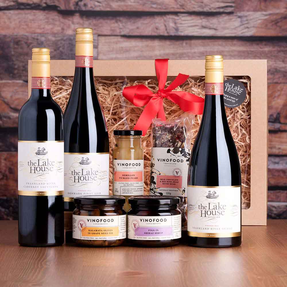 The ultimate gift hamper for those who love our Premium Reserve Red Wines plus some our premium Vinofood condiments. Indulge in a glass of Frankland River Shiraz while sampling the figs in shiraz syrup or a bite of rocky road.